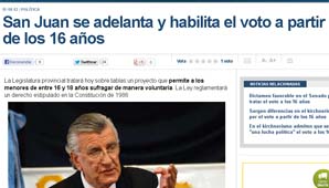 Infobae, La Nación, Mdz, Ámbito Financiero y varios diarios del interior del país reflejaron en sus portales la noticia y resaltaron que San Juan será la primera en permitir el sufragio a los menores entre 16 y 18 años.