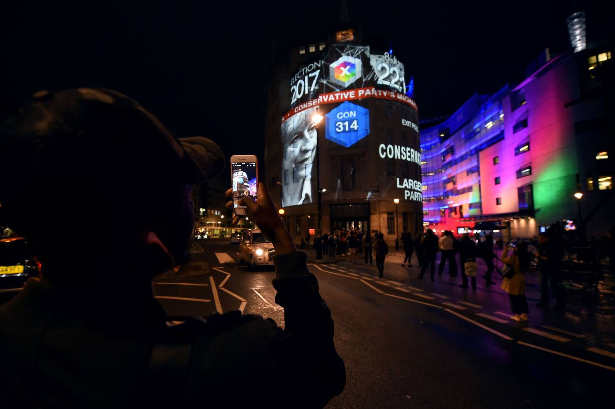 La primera ministra, según el sondeo a pie de urna, se quedará lejos de la victoria aplastante a la que aspiraba e incluso peor de lo que estaba antes de convocar las elecciones. Los conservadores se quedarían sin mayoría absoluta: tendrían 314 escaños, 17 menos de los que tiene ahora y a 12 de la mayoría absoluta. Los laboristas obtendrían 266, una subida de 34. Los nacionalistas escoceses (SNP), 34 asientos (pierden 22); los liberaldemócratas, 14 (ganan 6). El escenario dibujado por el sondeo a pie de urna, que históricamente tiende a acercarse al resultado final, abocaría a un Gobierno en minoría o incluso, aunque esto es menos probable, a una mayoría alternativa liderada por los laboristas.