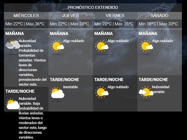 Por su parte, desde el Servicio Meteorológico Nacional han previsto para este miércoles, una máxima de 36°C mientras que la mínima será de 22°C.