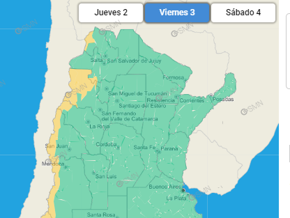 Y para la zona de Calingasta, donde se encuentra la zona de alimentación de la cuenca del río San Juan, agrega: "Se destaca la persistencia de este fenómeno por lo menos hasta el sábado 4, inclusive".