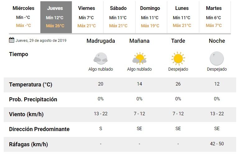 Tras un día que tuvo temperaturas de verano, desde Protección Civil emitieron un alerta por el ingreso de viento del sur de intensidad moderada. Según el Servicio Meteorológico Nacional, para este jueves está previsto que la máxima ascienda hasta los 26°C y la mínima caiga hasta los 12°C.