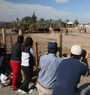En el predio ubicado en calle Mendoza, entre calles 5 y 6, en Pocito, el folclore que sonaba antes de que comenzara la competencia dejó paso al silencio. Fue cuando los dos miembros del jurado comenzaron a dar indicaciones y comentar las reglas del juego. Luego, el primer grupo de tres jinetes se colocó en la entrada del corral. En el fondo las vacas, que tenían números pintados en sus lomos, esperaban tranquilas. Hasta que el jurado indicó que debían encerrar todas las vacas que tenían el número 8, y todo cambió: los gritos y aplausos del público, ubicado a orillas del corral, se hicieron escuchar. "La cuernuda negra", gritaba uno; "el torito chico, el torito chico", indicaba otro. Todos trataban de guiar a los competidores y decirles cuáles eran sus vacas objetivo.