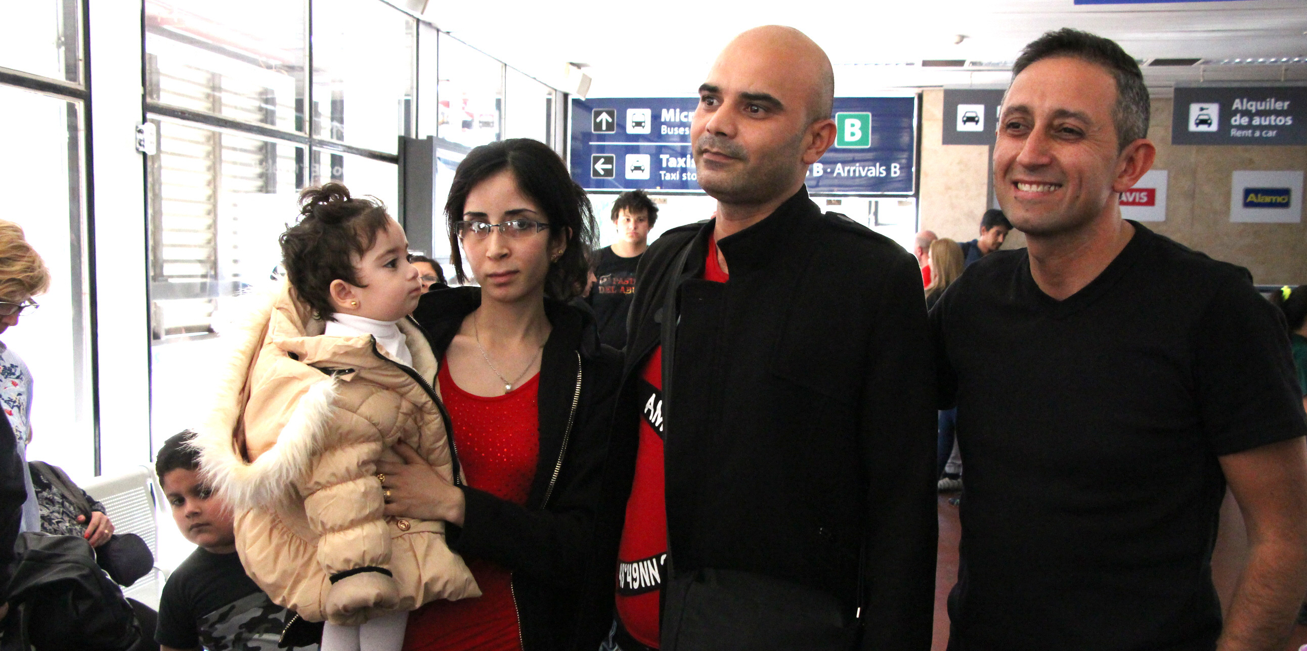 Con carteles de bienvenida, escritos en árabe, unas 20 personas recibieron ayer en el aeropuerto Domingo Faustino Sarmiento a la primera familia de refugiados sirios que llegan a San Juan, buscando comenzar una nueva vida, en un contexto pacífico.