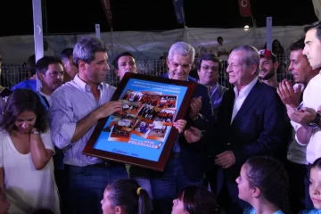 Durante la tercera noche de la Fiesta Nacional del Sol en el Complejo Costanera, el director de DIARIO DE CUYO, Francisco Baltazar Montes, tuvo un emotivo reconocimiento en el stand de la Secretaría de Deportes.
