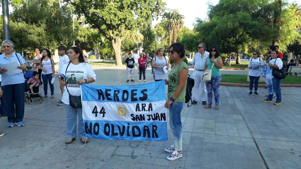 La convocatoria resultó escasa, no llegaban a 30 personas, y los transeúntes no parecieron captar la enorme emoción de las personas que rendían homenaje a Cayetano Vargas, Ricardo Alfaro y Renzo Silva, los sanjuaninos que dejaron su vida enlas profundidades del mar.