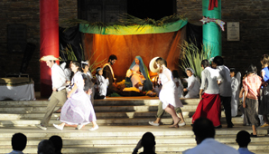Unos 20 chicos de la Acción católica realizaron una emotiva puesta en escena que cautivó a todos los presentes que estuvieron sentados sobre calle Mendoza.