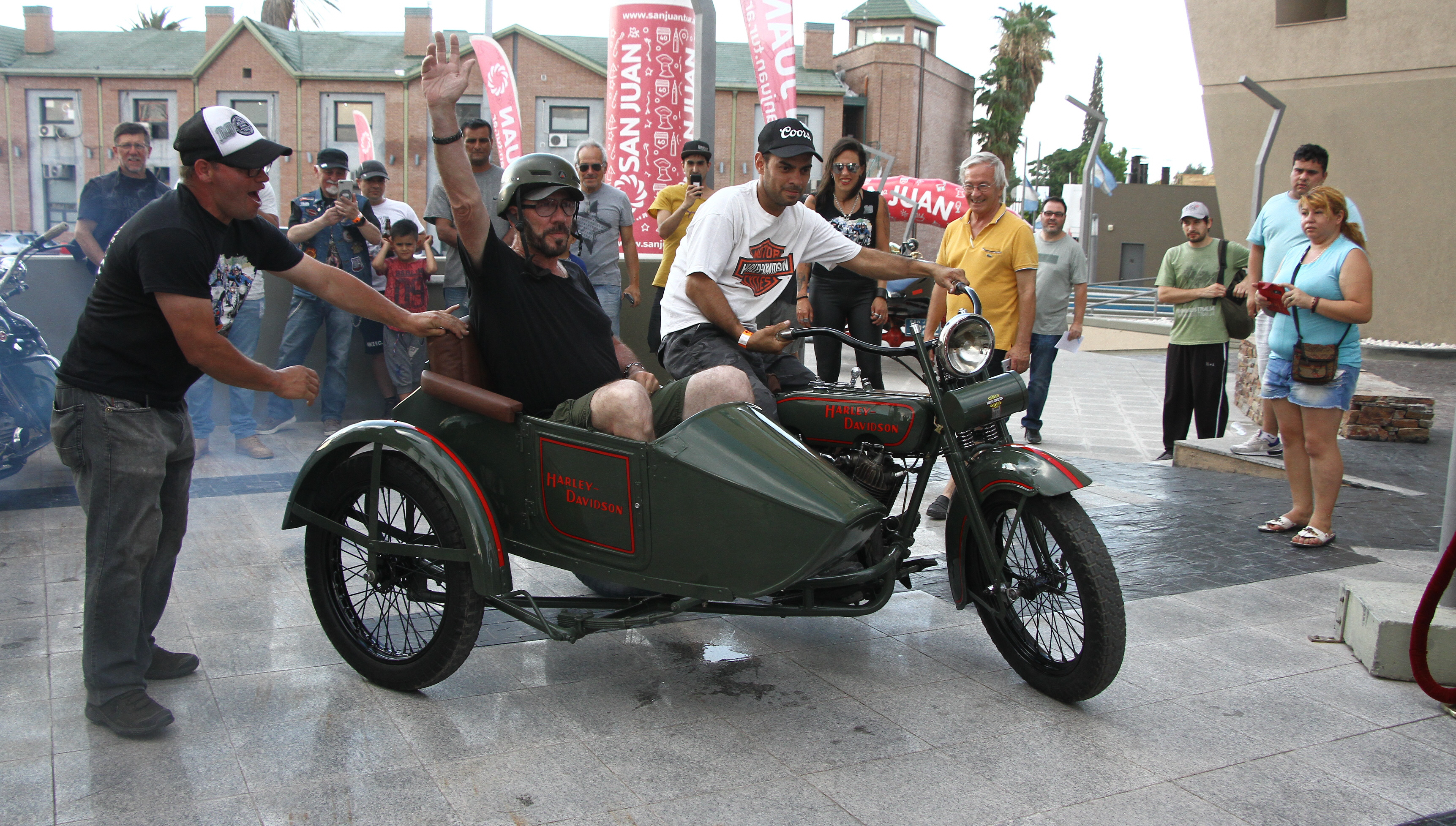 Impacto. Mario Videla, organizador del encuentro de dueños de Harley Davidson, se subió al side car para hacer un paseo por la terraza. Por primera vez se realiza en San Juan una reunión oficial de los apasionados por esta marca.