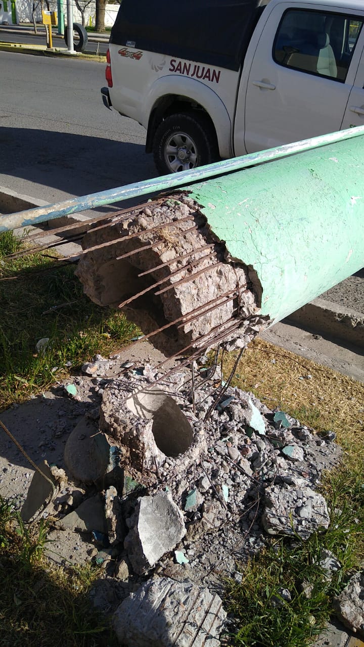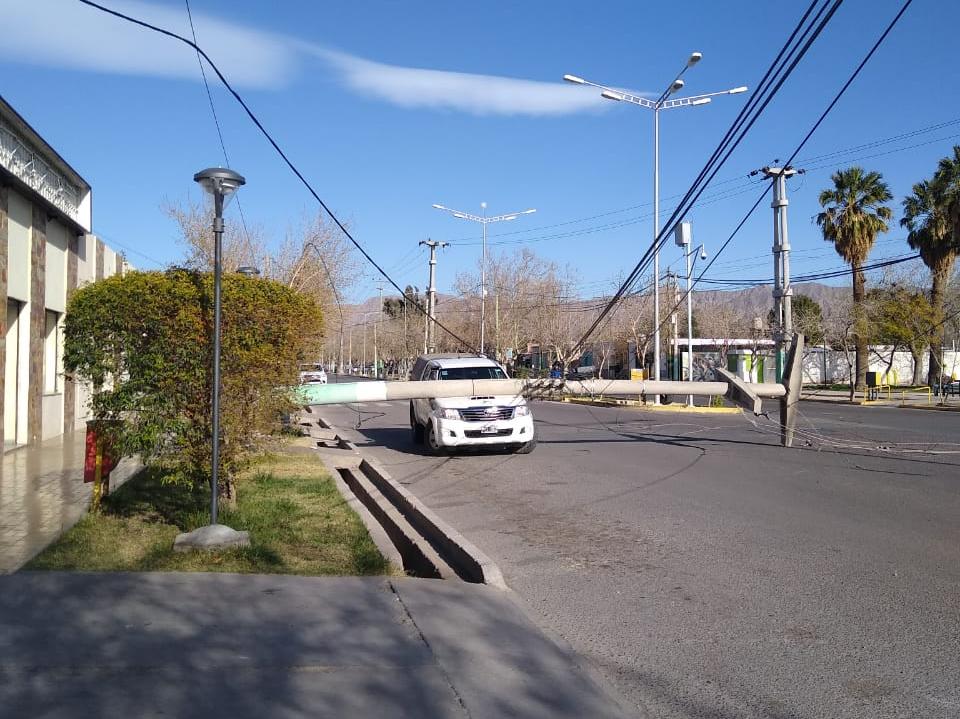 El poste de cemento cayó sobre capot de la camioneta y el tránsito se interrumpió por algunos minutos hasta que fue removido.