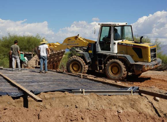 Según el funcionario, ya limpiaron los terrenos e hicieron 20 terraplenes de entre 60 y 70 metros de altura armados donde antes de la catástrofe estaban las casas. Lo que se está haciendo ahora es la construcción de las plateas de cemento, es decir de las bases sobre las que se colocará los módulos, una tarea en la que trabajan personal de su ministerio, del de Infraestructura, de la Municipalidad de Sarmiento, de empresas privadas y de miembros de los grupos Cooperativistas de Argentina. Este último equipo también está construyendo mesas, sillas y estanterías que entregará a los perjudicados.
