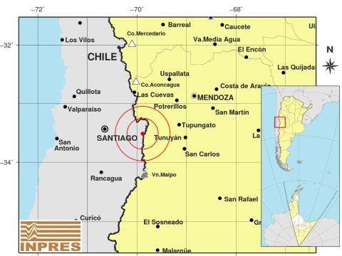 Según datos del Instituto Nacional de Prevención Sísmica, el primer temblor se registró a las 10:10, con epicentro a 257 kilómetros al Sudoeste de San Juan y a 121 kilómetros al Sudoeste de Mendoza; a una profundidad de 137 kilómetros.
