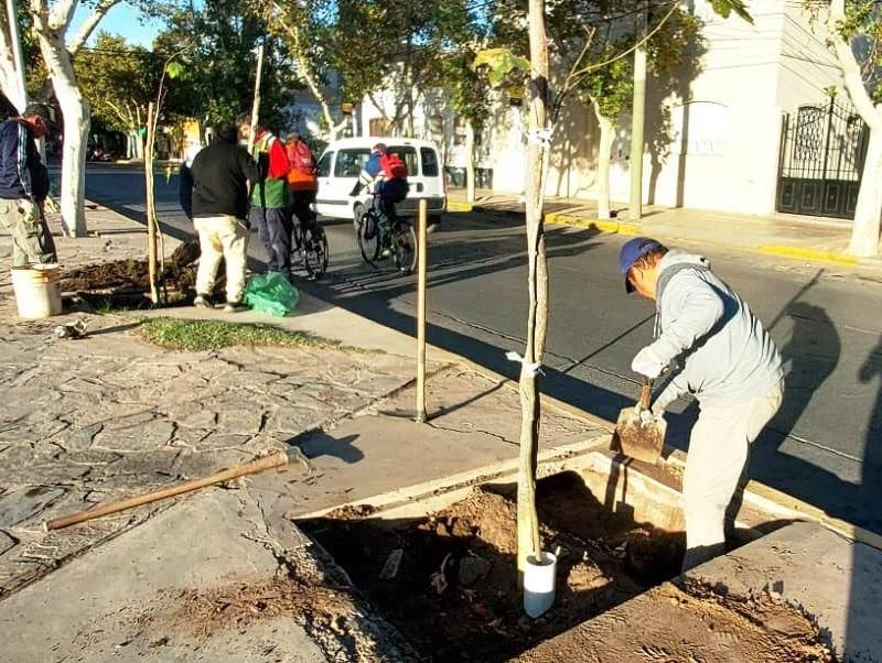 Molina contó que hasta el momento se plantaron unos 70 árboles en 4 paseos, todos con el nuevo sistema de riego. La Plaza Laprida se reforestó con 11 ejemplares, mientras que en la Plaza 25 plantaron 5 y en la Almirante Brown, 22. Y que hace un par de días se terminó con la reforestación de la Plaza Hipólito Yrigoyen con la plantación de 32 ejemplares entre los que se destacan los robles sedosos, las acacias, los jacarandá y los plátanos. Cada uno de estos 70 nuevos ejemplares cuenta con el sistema de riego personalizado y con una protección extra. "En el tronco de cada ejemplar también se colocó un caño de PVC para mantenerlo protegido cuando se corta el césped de alrededor con una bordeadora", explicó.