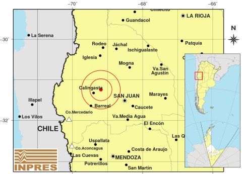 Mientras que, el segundo sismo se produjo a las 11,57 se ubicó también en Calingasta, 22 km al Noreste de la villa cabecera y 71 km al Noroeste de San Juan.