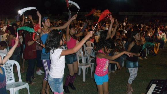 Las chicas se resistían a dejar de bailar al ritmo de la música de El Yeyo, frente al escenario montado en el Club Sportivo 9 de Julio.