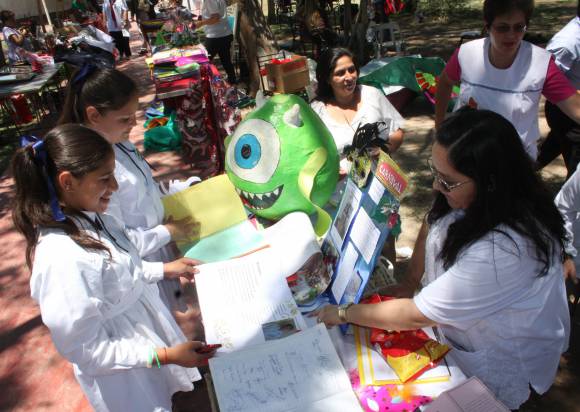 Las veredas de la plaza y hasta las calles que la rodean acogieron a distintos stands, en los que las escuelas expusieron libros y textos de su patrimonio, pero especialmente material en los que los alumnos trabajaron durante casi todo el año, con relatos y dibujos referidos a la historia de Chimbas. Hubo además exposición de maquetas y trabajos prácticos de las 24 escuelas de gestión estatal y de las dos privadas que hay en el departamento.