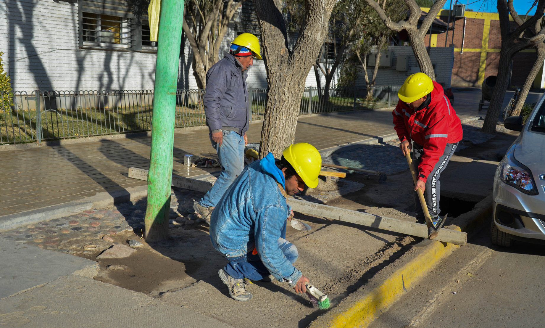 En camino. Personal del municipio de Jáchal comenzó a construir las nuevas paradas de colectivos que contarán con estructuras techadas, asientos y carteles que indiquen qué líneas pasan por cada zona.