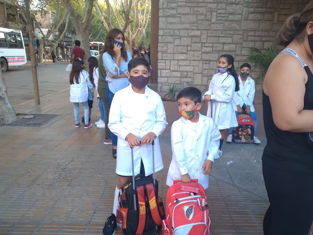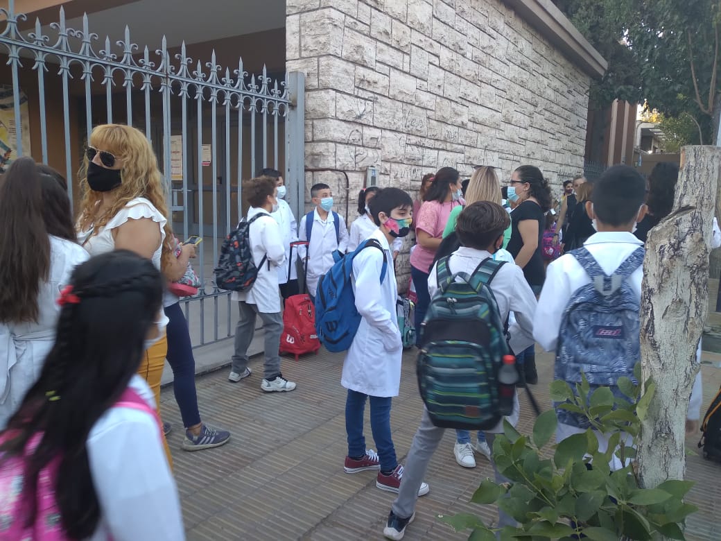 Antes de las 8, las puertas de los establecimientos comenzaron a colmarse de chicos, en muchos casos con sus papás. Todos con el barbijo puesto y esperando para ingresar a las escuelas.