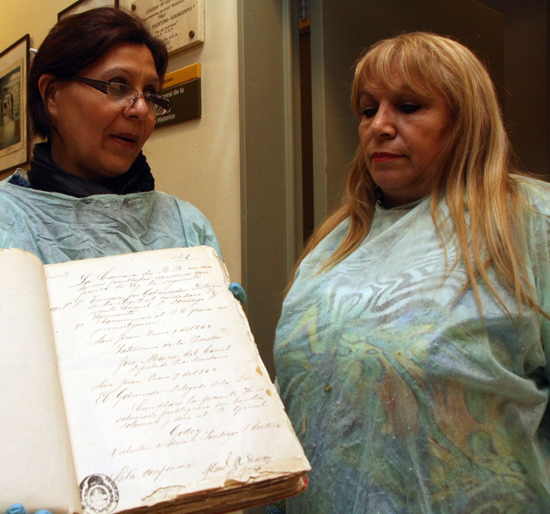 Actualmente el documento está como fue hallado. Es decir, enmarcado. En ese mismo marco el documento viajará hasta San Juan. Especialistas del Archivo explicaron que el documento será envuelto en dos bolsas de polipropileno libre de ácido. Posteriormente se guardará en dos bolsas de friselina negra que permiten que no ingrese tierra ni luz. Una vez que haya sido envuelto en esas bolsas, se cubrirá el paquete con cartón maquetero y posteriormente con una bolsa de nailon aireado. Finalmente se lo meterá en una caja libre de ácidos. Explicaron que todos esos recaudos se toman para evitar que sufra algún tipo de daño ya que se habla de un acta que tiene 155 años y que es considerada un gran tesoro para la provincia. En ese contexto, explicaron que el documento en algún momento estuvo dentro del Archivo Provincial, pero no saben cómo ni cuándo fue extraído. "Cuando revisamos los libros descubrimos que faltaba un folio y justamente cuando comparamos las copias del libro con el documento hallado descubrimos que se trataba de un original y que estuvo archivado, pues tiene borrado el número de folio", explicó Reyna y dijo que una vez que el documento esté en San Juan verán si se puede o no sacar del cuadro en el que está.