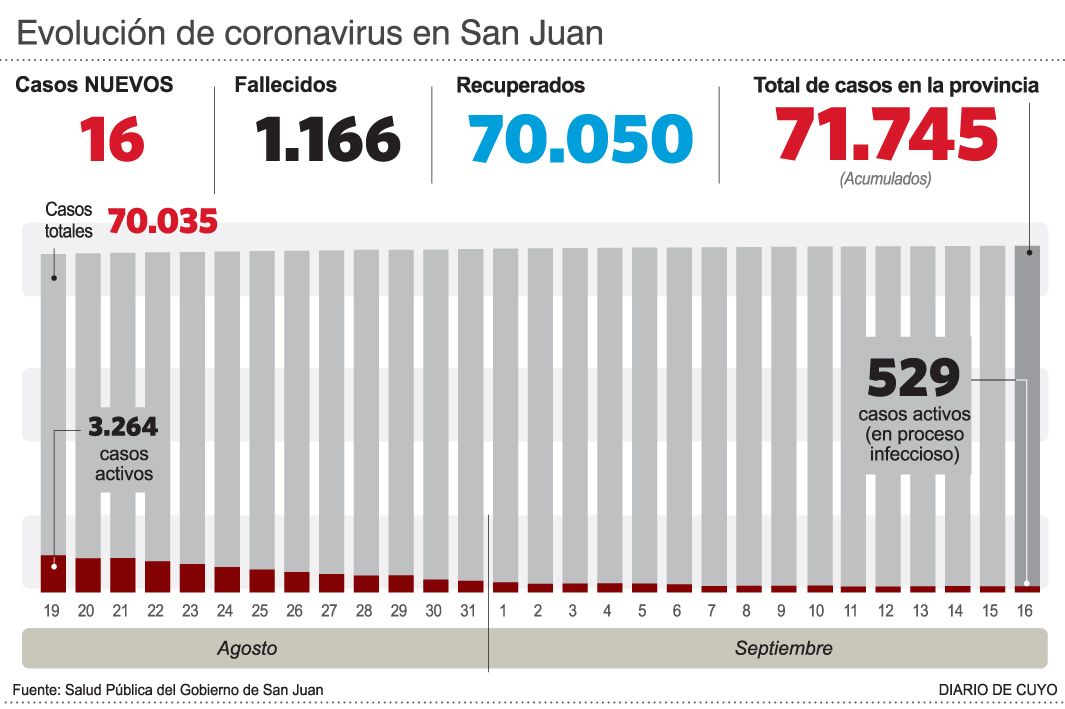 En una jornada dolorosa, Salud Pública informó cuatro muertes, con la particularidad que eran personas de mediana edad. Las víctimas tenían 43; 58; 55 y 58 años y de esta manera el total de fallecidos es de 1.666. A su vez, hubo apenas 16 nuevos casos y el acumulado tiene 71.745 infectados.