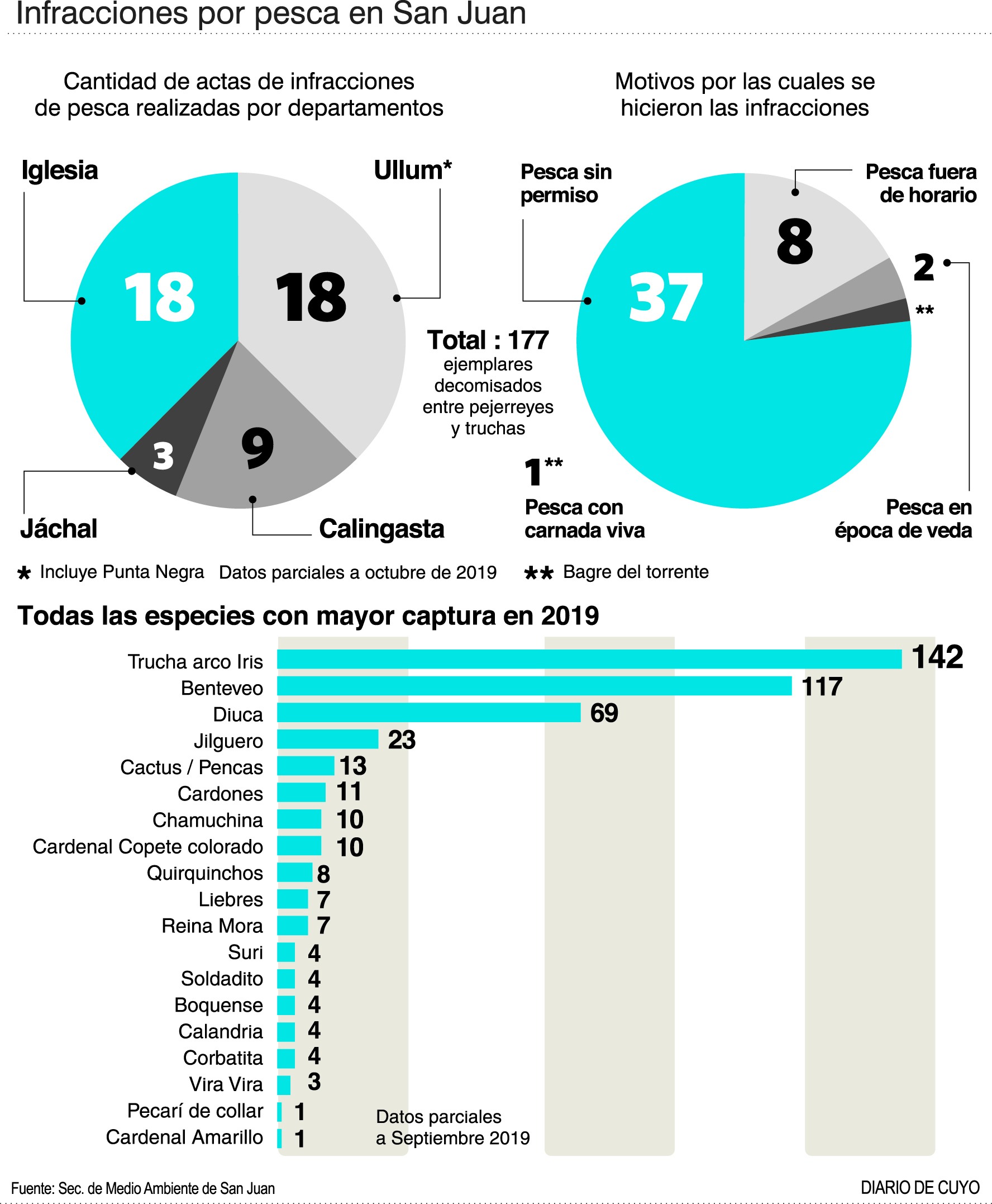Desde la Dirección de Conservación y Áreas Protegidas de la secretaría de Ambiente de la Provincia, advirtieron de la obligatoriedad de adquirir esta licencia (la más económica cuesta 60 pesos y vale por un día), ya que se transformó en la principal causa de infracciones detectadas en el ámbito de la pesca. El 77% de las actas están relacionadas con este motivo. En el segundo puesto, con 16%, la infracción que se cometió fue la pesca fuera del horario permitido.
