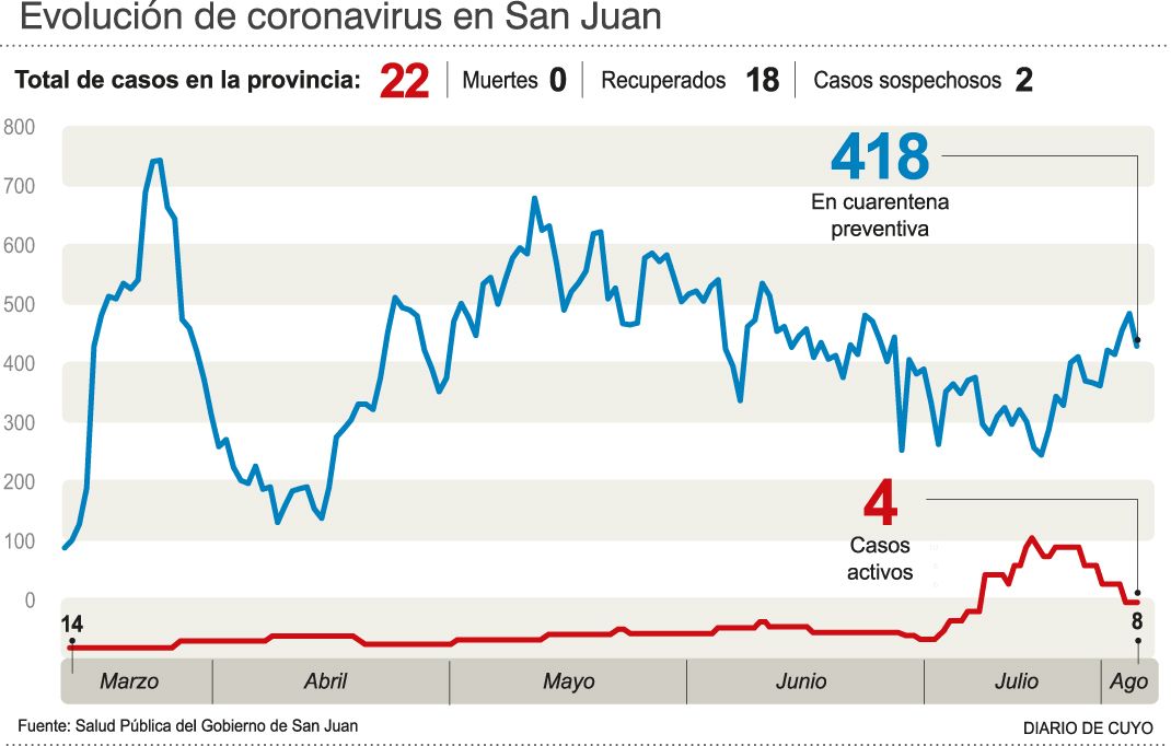 San Juan mantiene 22 casos y por ahora dos sospechosos.