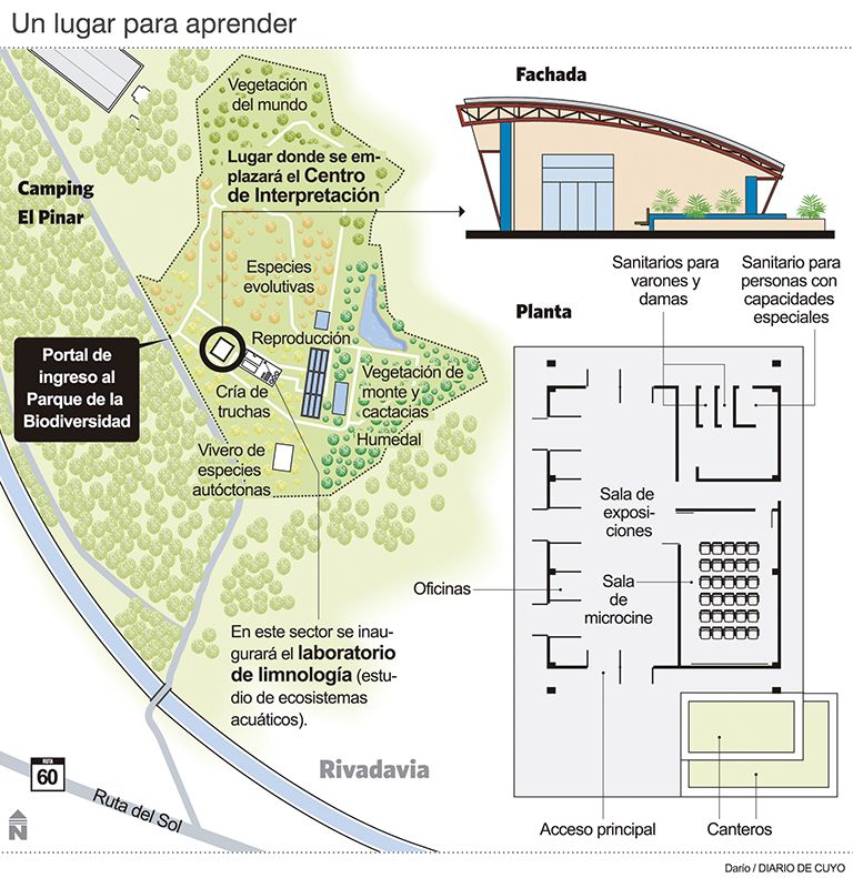 En el Parque de la Biodiversidad, en Rivadavia, buscan brindar más servicios con fines educativos para los alumnos que visitan el lugar. Es por eso que pondrán en marcha un Centro de Interpretación que incluirá hasta una sala de microcine para la proyección de diferentes materiales. El próximo lunes se colocará la piedra basal del edificio donde funcionará este nuevo servicio. Ese mismo día quedará inaugurado el Laboratorio de Limnología.
