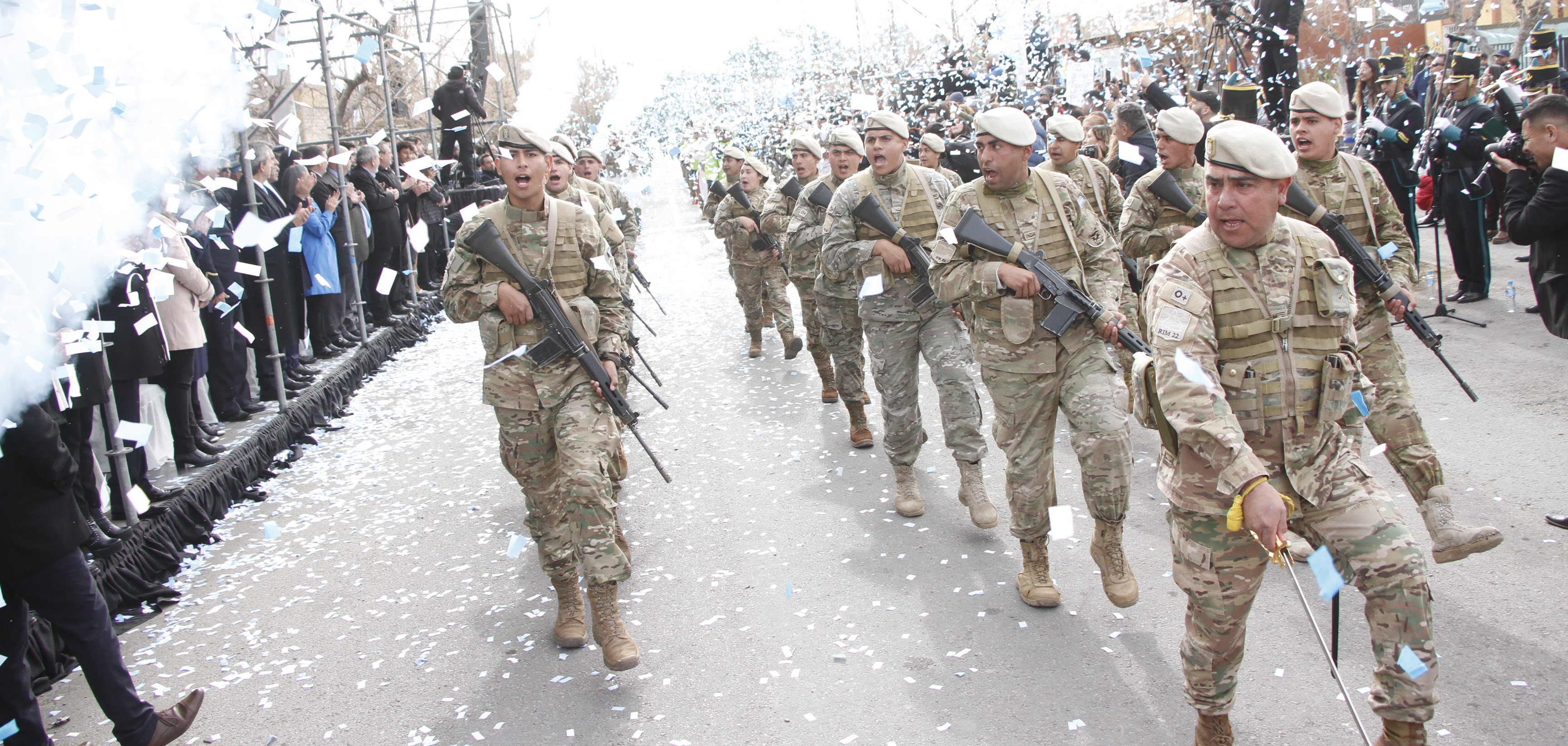 La apertura estuvo a cargo de los soldados del RIM 22 que desfilaron bajo los miles de papelitos blancos y celestes que arrojaron al aire para rendirles honor en el Día de la Independencia. Posteriormente hicieron su paso los miembros de Gendarmería Nacional, de la Policía Federal, de la Policía de San Juan y los del Servicio Penitenciario.