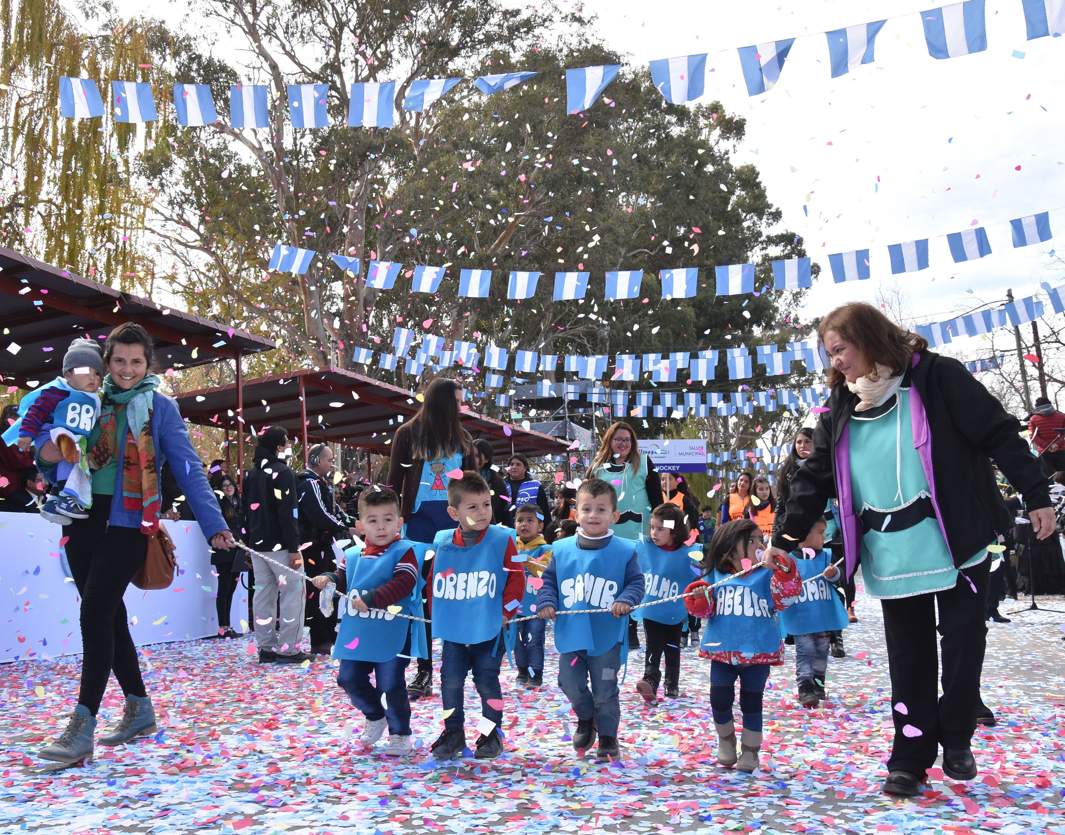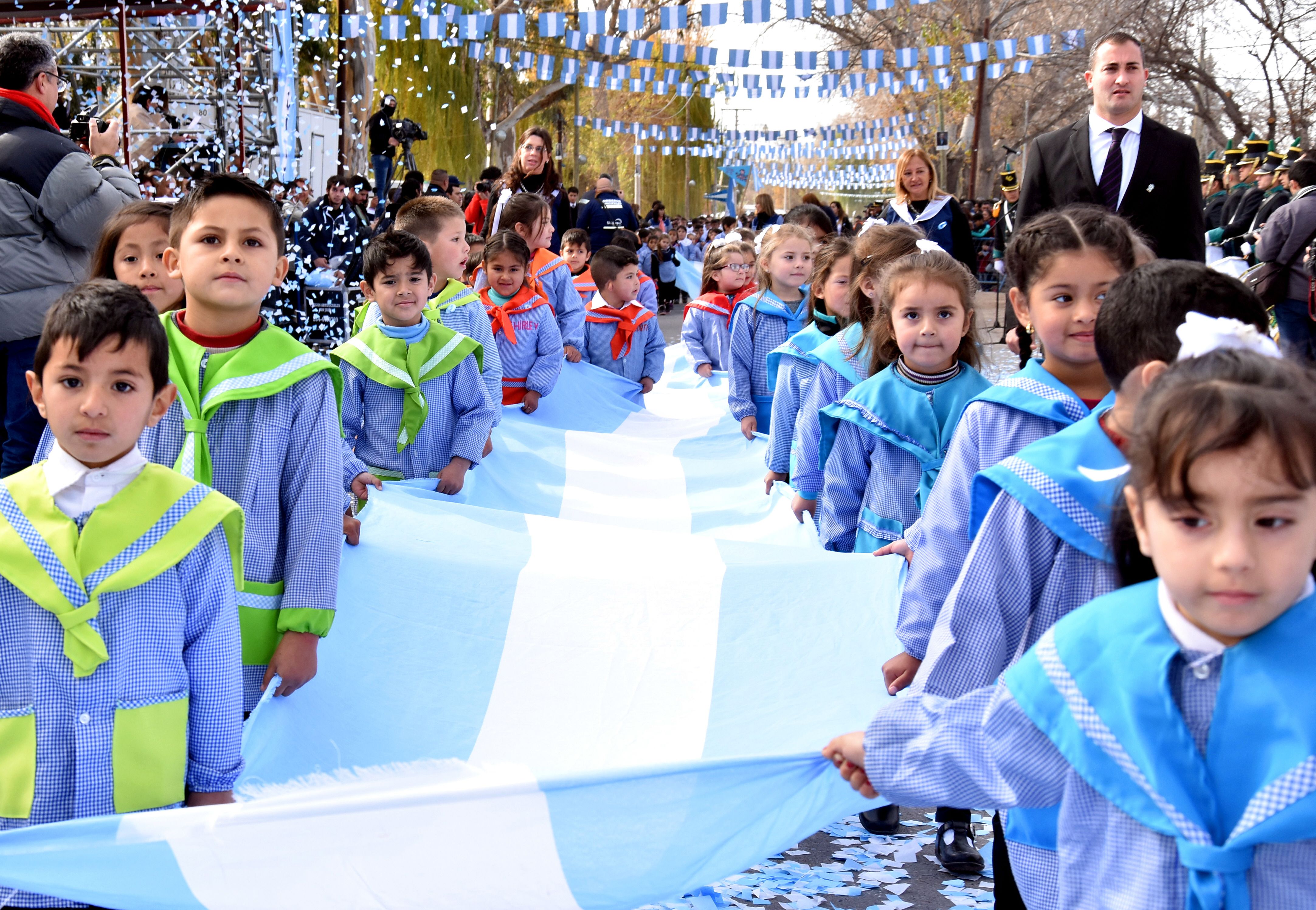 Gigante. Los alumnos de Nivel Inicial, pese a su edad y altura, portaron la Bandera Argentina más imponente de todas las presentes.