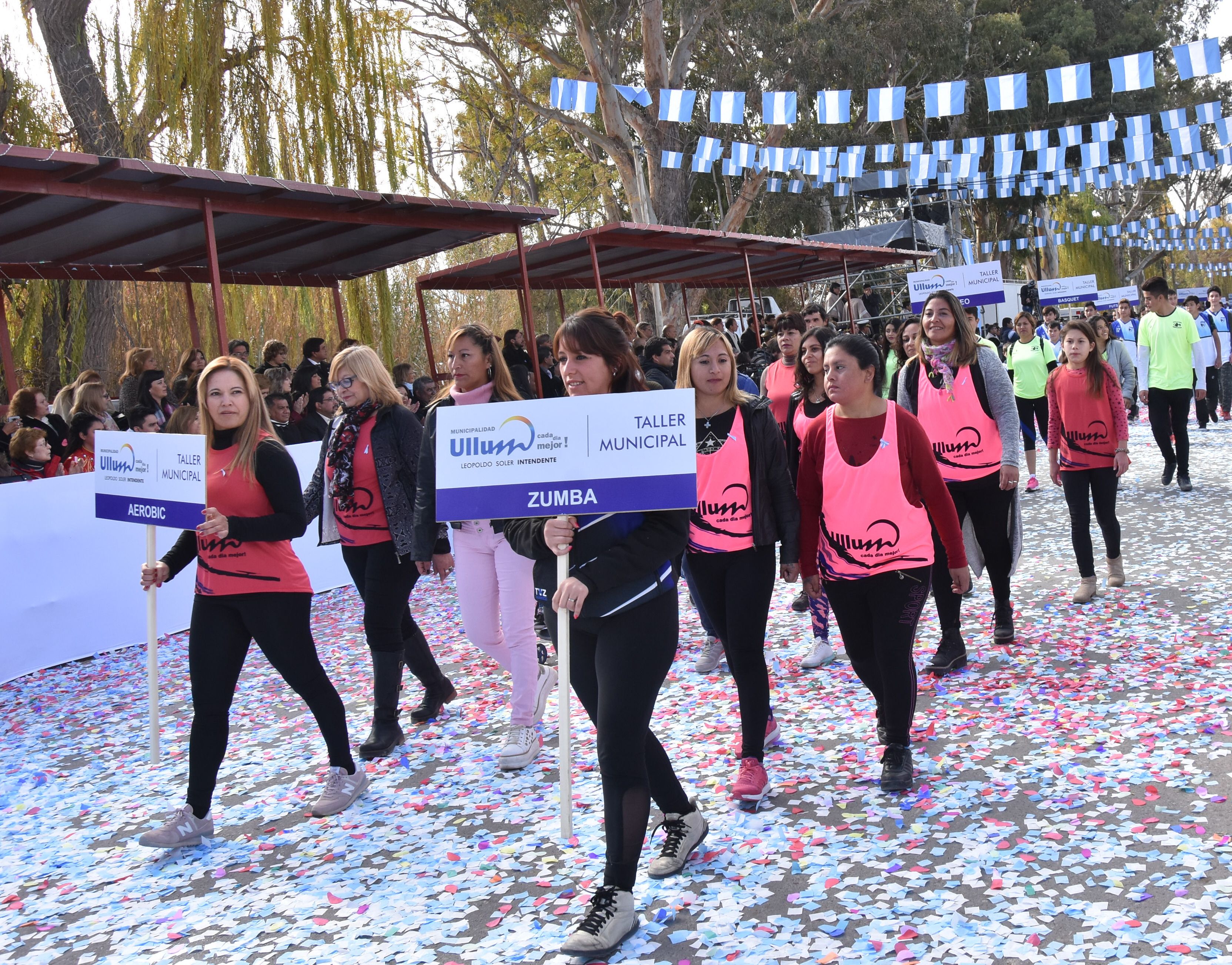 El municipio de Ullum aprovechó el desfile patrio para dar a conocer los diferentes talleres que ofrece gratis para los vecinos como los de aerobic y zumba, entre otras propuestas deportivas y culturales.