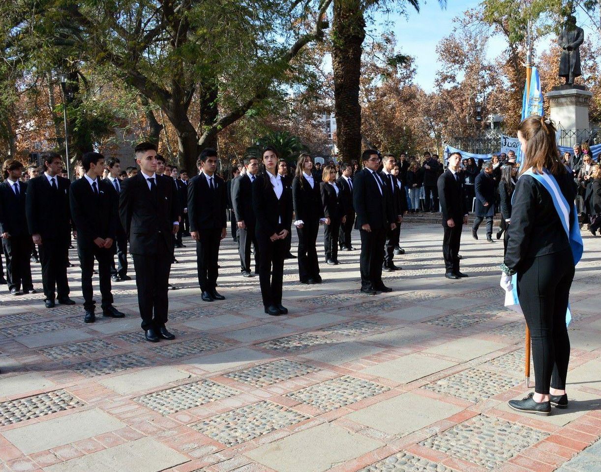 Los alumnos de 6to año de la Escuela Industrial protagonizaron el acto de renovación de la promesa de lealtad a la Bandera. El acto se llevó a cabo en la Plaza Aberastain con la presencia de autoridades de Capital.