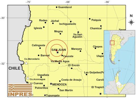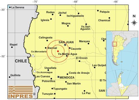 En este caso, el epicentro estuvo en el Sur, 46 kilómetros al Sudoeste de Capital; 120 kilómetros al Norte de Mendoza; y 47 kilómetros al Noroeste de Media Agua, en Sarmiento.