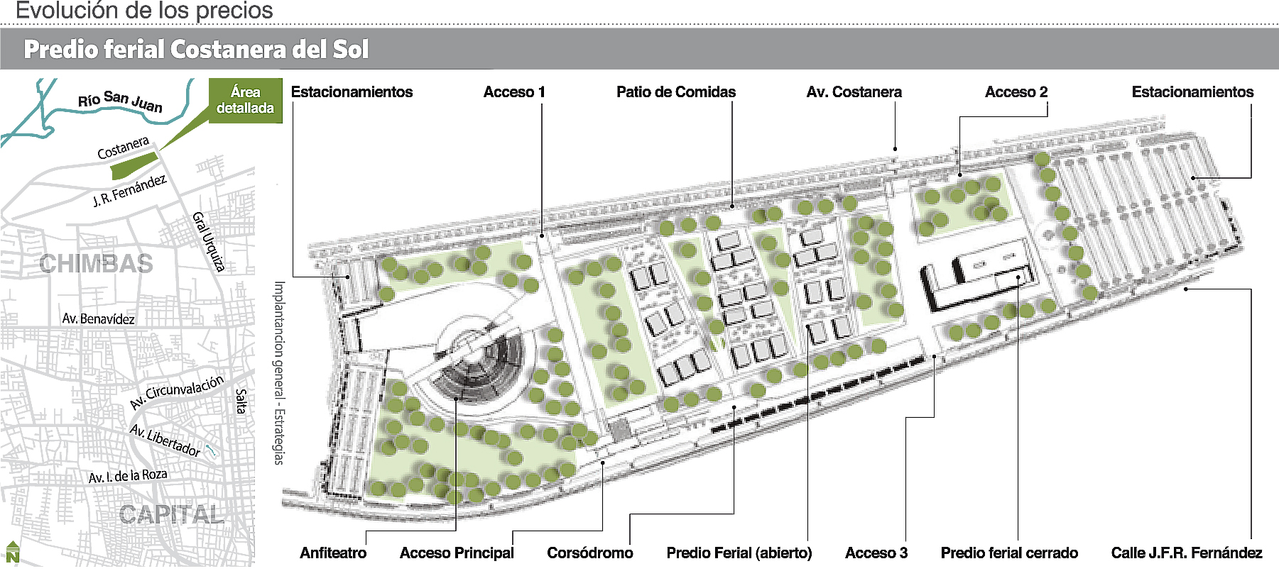 3 Accesos principales tendrá el predio ferial de Chimbas. Dos estarán ubicados por la avenida Costanera y el restante por la calle Fernández.