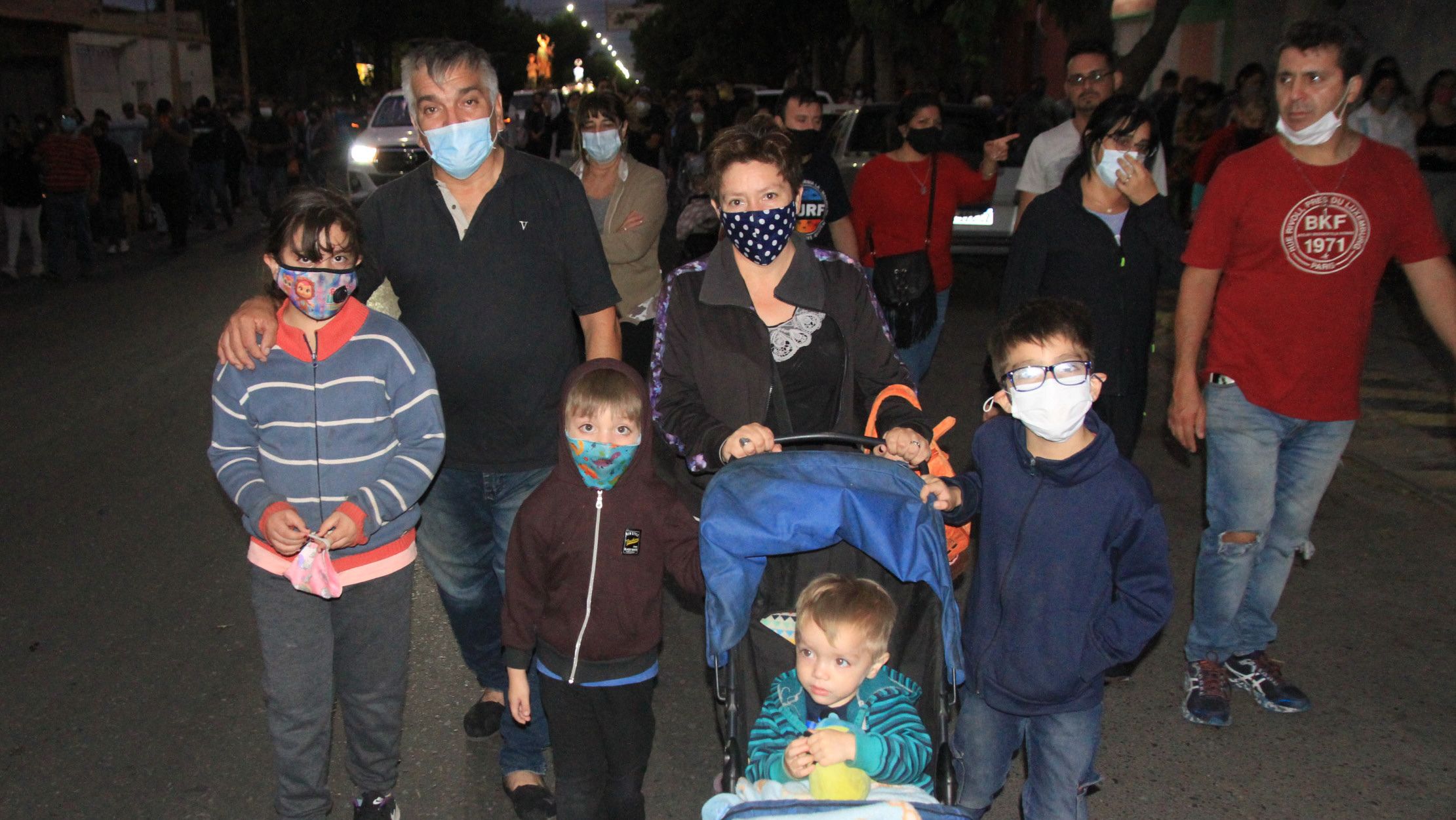 La cantidad de fieles hizo que más de 3 cuadras estuvieran llenas de gente, que seguía el paso de María. Con pañuelos blancos y amarillos los feligreses vieron y acompañaron la imagen de la Virgen, que esta vez convocó a muchas familias. "El año pasado sólo hubo una misa e igual vinimos, pero extrañábamos la procesión. Esta vez, estamos pidiendo por dos sobrinos que están sin trabajo", dijo Rita Galíndez, una mujer que llegó junto a su hermana Mirtha Galíndez, desde Capital.