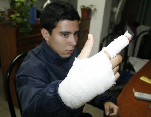 El accidente ocurrió hace 11 días, alrededor de las 9. Después de haberse lastimado, el joven fue trasladado al Hospital Rawson donde, según la mamá del chico, Patricia Ocampo, tuvieron que operarle el dedo índice y pegarle la yema del dedo medio.
