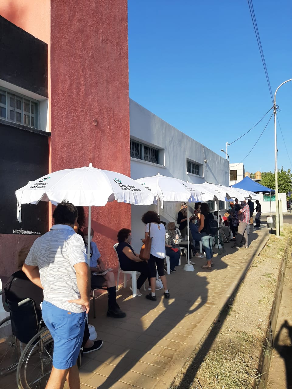 Por su parte, el personal de salud presente en los Centros de Salud también asiste de manera constante a los adultos mayores que desde temprano formaron filas para ser inoculados. En el Polideportivo de la Escuela San Martín, (zona Capital) los mayores de 80 años contaron con sillas, sombrillas, agua, y colaciones para evitar cualquier tipo de afección.