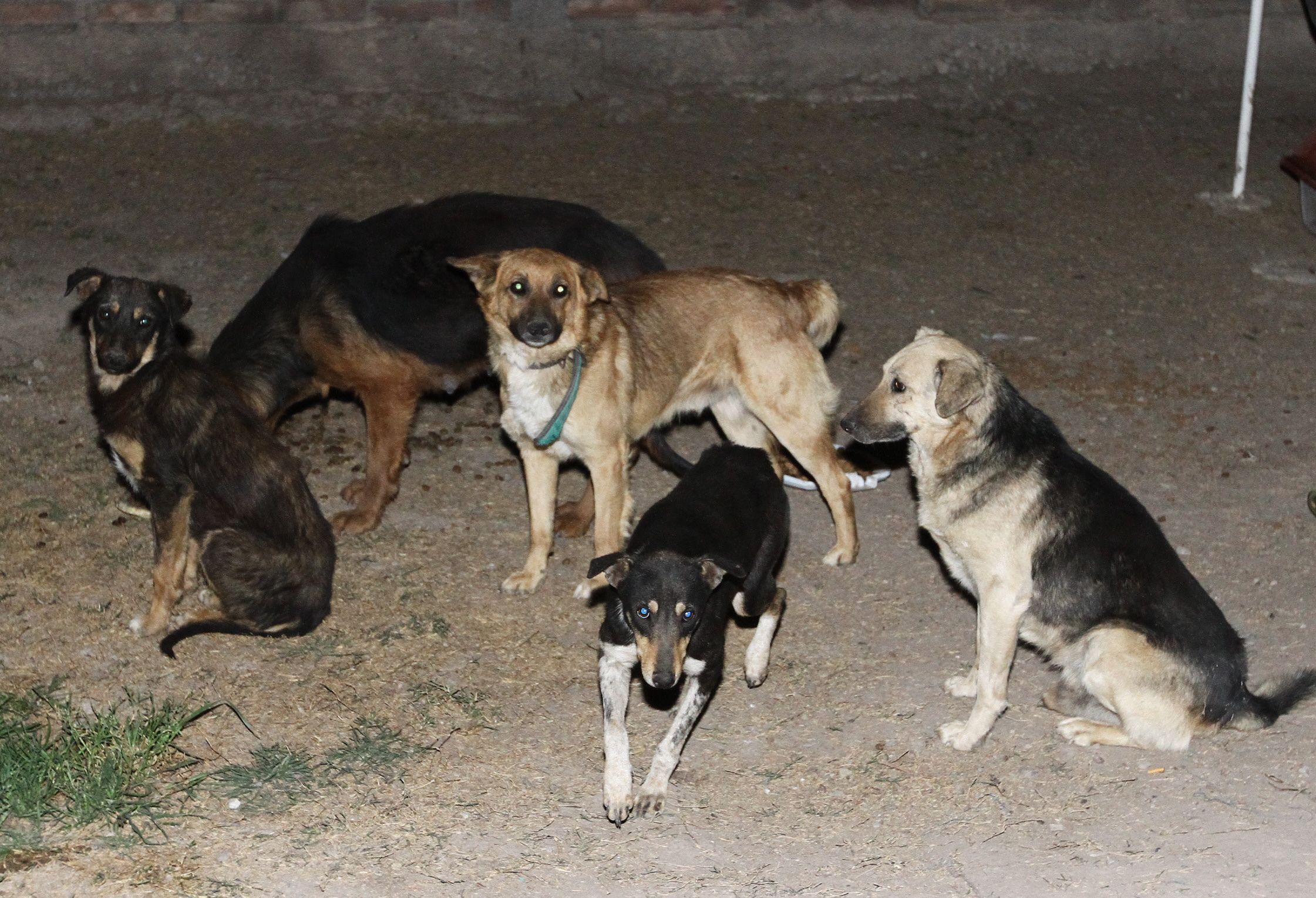Resta una pericia. Los seis perros son mestizos y de porte mediano (en la imagen uno estaba escondido bajo un toldo). Las personas que los custodian aseguran que no son perros agresivos.