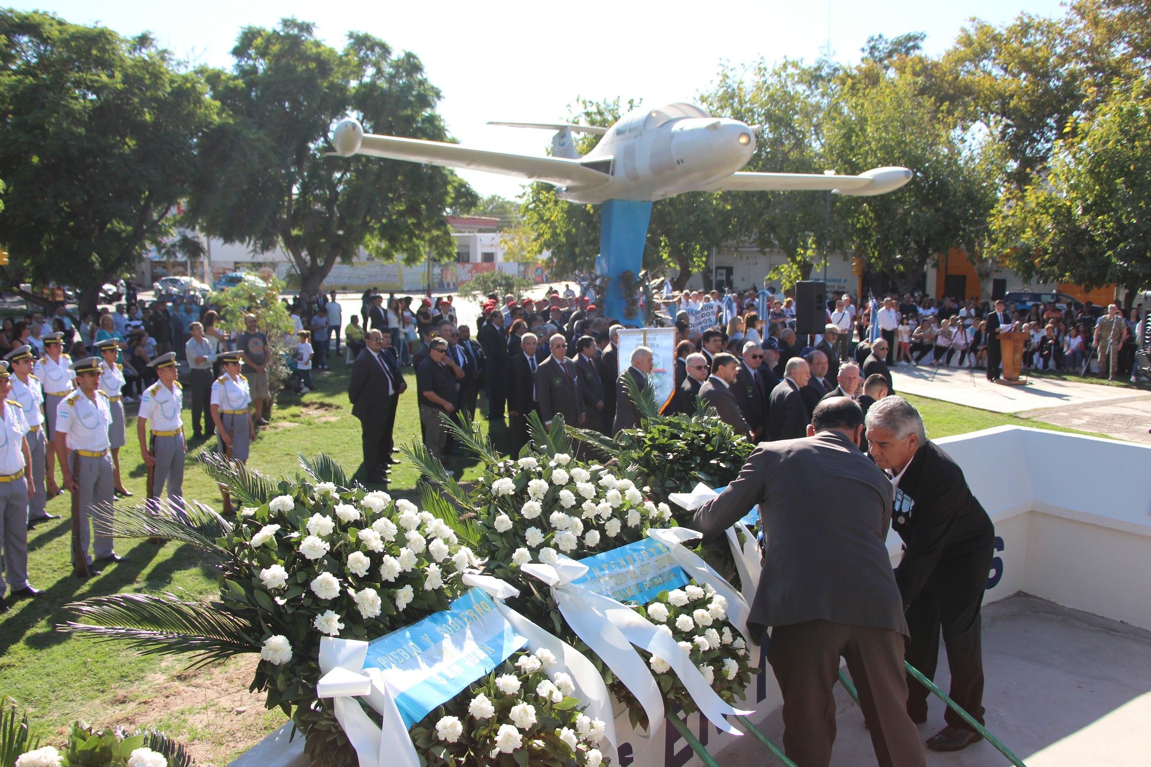 Ya por la mañana, el acto se vivió con palabras alusivas y la ofrenda de coronas de laureles coladas en el monumento ubicado al lado de la fuente que recuerda a quienes no volvieron de las Islas, por parte de las autoridades, encabezadas por el vicegobernador, Marcelo Lima.