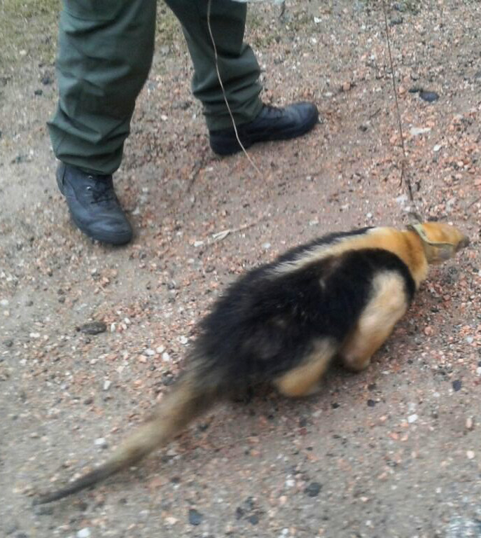 El oso melero es muy parecido al oso hormiguero, pero de tamaño más pequeño. El animal que encontraron tiene un llamativo pelaje de tonalidades marrón y negro, además de una nariz prominente. Se trata de una especie que tiene hábitos nocturnos, se alimenta de hormigas, de termitas, miel y hasta de frutas. Es un animal muy vulnerable y sensible, además de inofensivo, según explicó Alejandra Cano, subsecretaria de Conservación de la Secretaría de Ambiente.