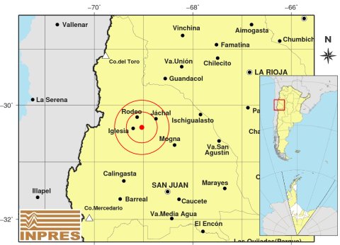 Fue a las 16:39:39 de hoy, con epicentro 134 km al Norte de San Juan; 238 km al Suroeste de La Rioja; 17 km al Este. Alcanzó una Magnitud en la Escala de Richter de 3,4°. Fue a una profundidad de 30 km. La Intensidad, medida en la Escala Mercalli Modificada, fue de III en Rodeo y II a III en la ciudad de San Juan.