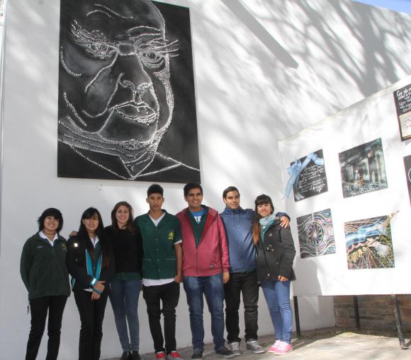 Además de los cuadros hubo un mural de más de 3 metros que se volvió en la atracción. Esta obra también fue hecha por un grupo de alumnos. Estos chicos sólo utilizaron tizas blancas y grises para retratar a Sarmiento.