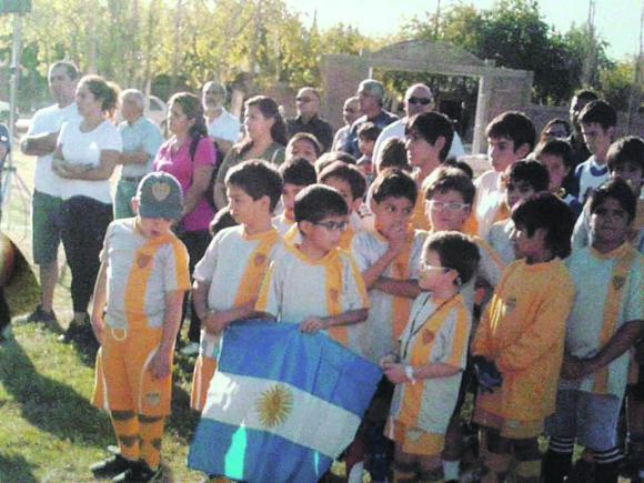 Además de la religión, la comisión directiva considera importante es transmitir a los más chicos el amor por la patria. "Para fechas patrias izamos la bandera y cantamos el himno. Hace poco, el municipio hizo en el polideportivo el desfile por el aniversario del departamento, invitamos a los excombatientes y los chicos de la escuelita de fútbol se mostraron muy emocionados. Nos parece vital que los chicos sepan de nuestros valores y puedan transmitir esto", agregó Gastón.