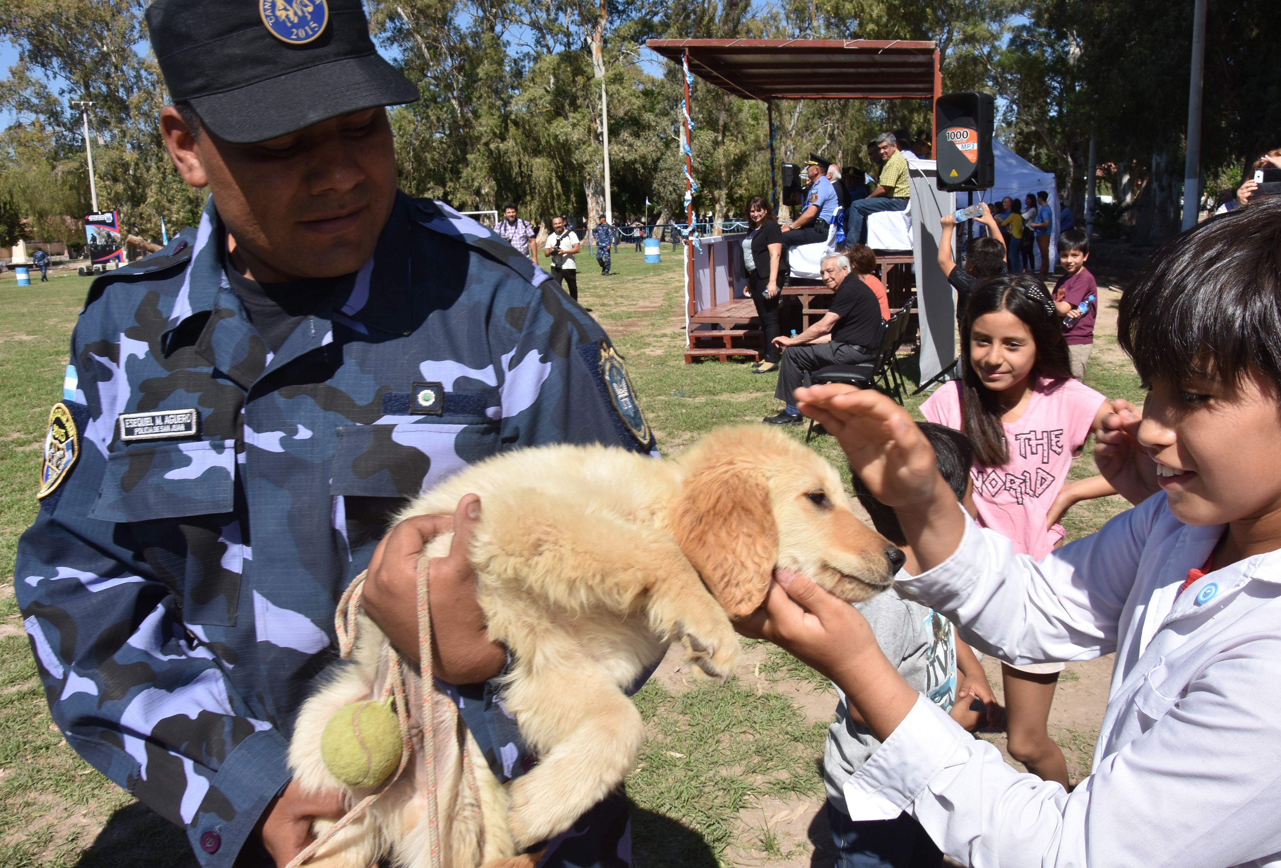 Peluche, la atracción. Los chicos de las escuelas que presenciaron el acto bautizaron al golden como Peluche.