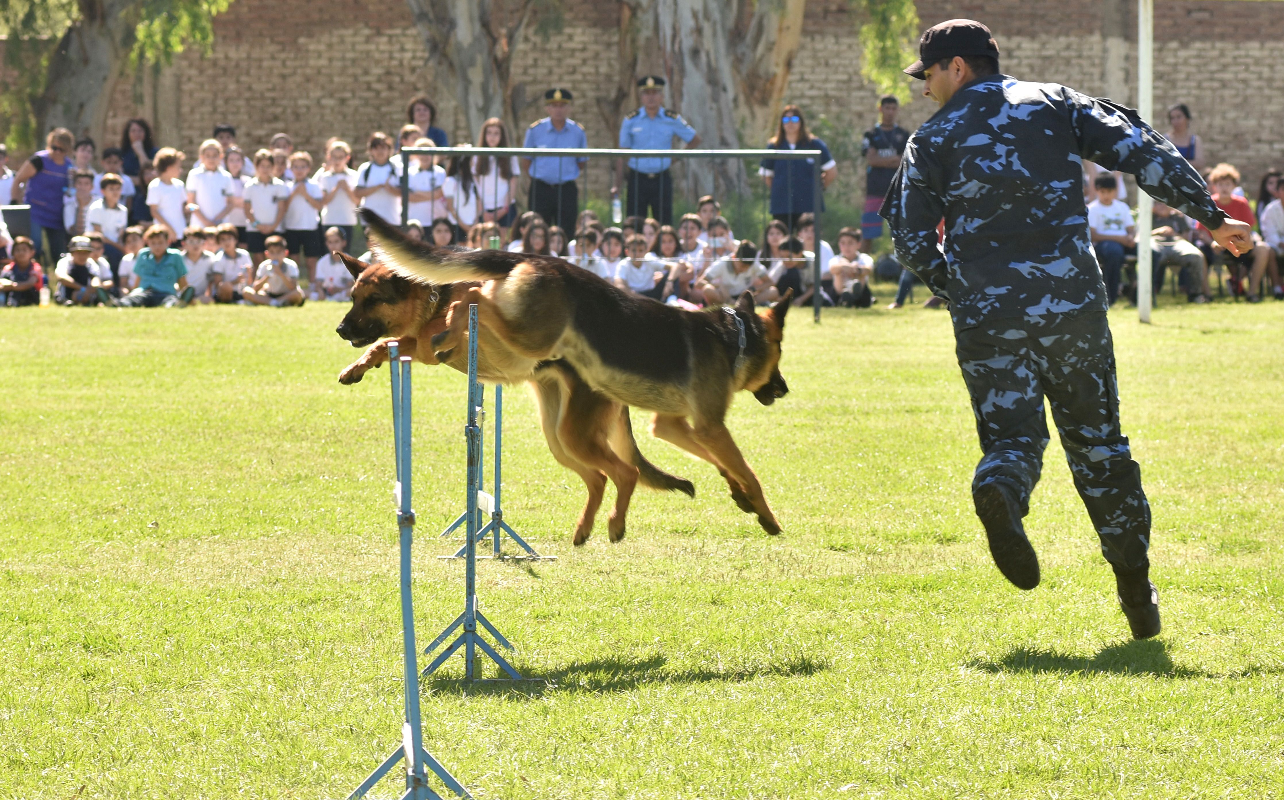Luego del homenaje, llegó el turno de llevar adelante la exhibición anual de esta sección de la Policía que es la que suele estar más cerca de los niños. Por eso no fue casual que ayer, la mayor parte del público estuviera compuesto por alumnos de distintas escuelas de los departamentos aledaños.