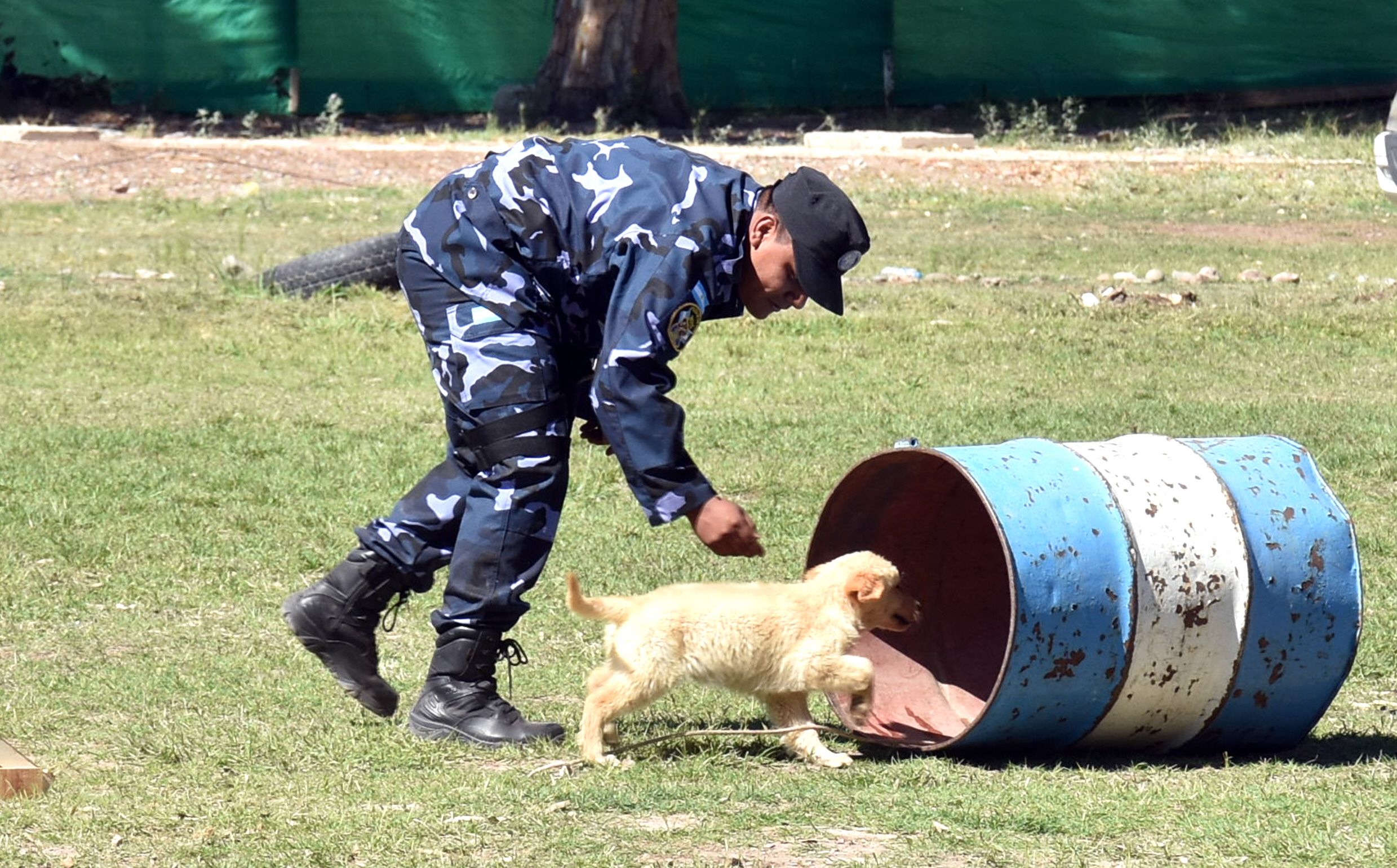 Primeros pasos. Peluche mostró lo que ya está aprendiendo. Se trata de uno de los cachorros que empezaron a entrenar para los operativos.