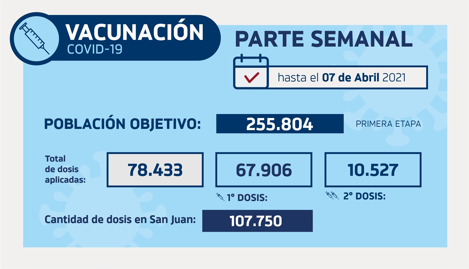 El Ministerio de Salud Pública informó este miércoles el parte semanal de vacunación en San Juan hasta las 8 del 7 de Abril de 2021.