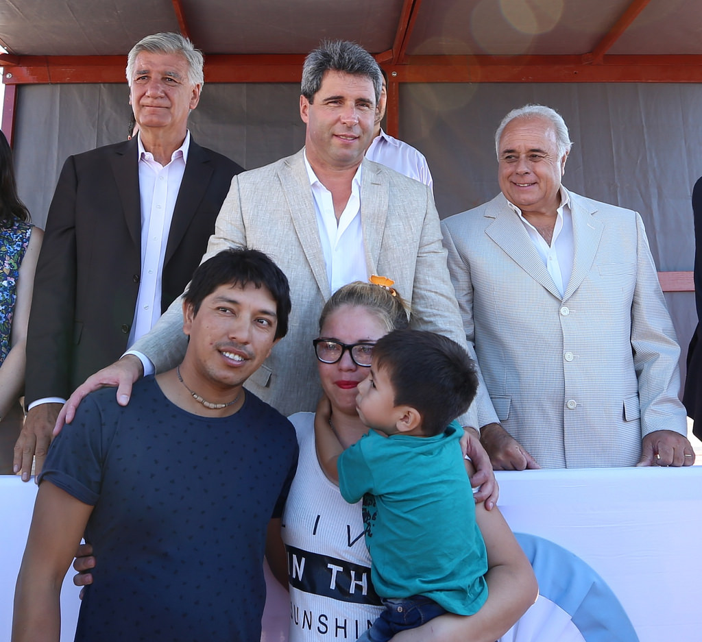 El acto fue encabezado por el gobernador Sergio Uñac, quien en su discurso manifestó que “en una sociedad que crece y se desarrolla necesitamos igualdad de oportunidades para todos. Es por eso que tenemos en construcción más de 6.000 viviendas. La edificación de hogares tiene un efecto multiplicador en San Juan porque el objetivo final es que las familias reciban su casa, pero además, se genera trabajo en el sector de la construcción”. El mandatario estuvo acompañado del director nacional de Vivienda Social, Ramiro Masjuan; el ministro de Infraestructura, Julio Ortiz Andino; el intendente de Rawson, Juan Carlos Gioja, y el interventor del IPV, Juan Pablo Notario.