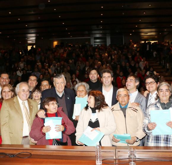 �En el auditorio Eloy Camus, el gobernador Gioja encabezó al acto de entrega de 862 beneficios a nuevos jubilados. Las autoridades destacaron la importancia de la ayuda económica a los adultos mayores a la vez que informaron que ya ascienden a 9.500 las personas que recibieron la jubilación de acuerdo a la nueva ley de inclusión previsional.