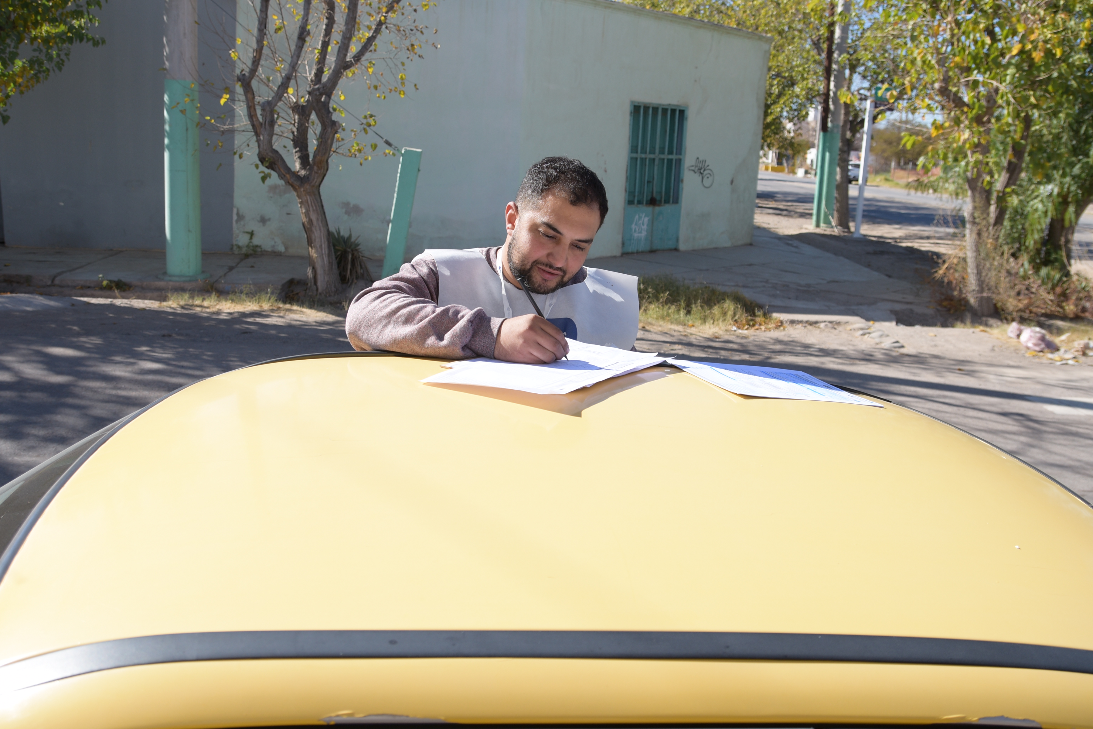 Después de pasar por un casa se acercaba a su taxi y, usando el techo como mesa impromisada, controlaba lo que había escrito y por dónde seguir. De esa manera se desempeñó durante el Censo 2022, Daniel Echegaray, de 30 años, quien es taxista, estudia Abogacía y aceptó la convocatoria para ayudar.