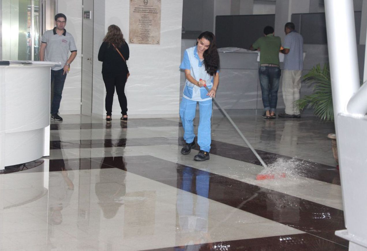 Desde la empresa constructora, Petersen, Thiele y Cruz, el jefe de la obra, Miguel Roux, afirmó que el agua -por la intensa lluvia que ocurrió ayer- fue bien evacuada por el sistema de desagüe pluvial, pero que el problema se originó por la cuneta, que estaba tapada, y porque la calle -Agustín Gnecco- estuvo “colmada de agua de cordón a cordón ya que es el desagüe de la Avenida José Ignacio de la Roza. Entonces se produjo una contrapresión hidráulica que provocó que regresara el agua por los conductos de desagües de los artefactos de aire acondicionado”, por lo que se originaron los inconvenientes en planta baja y en el primer piso.