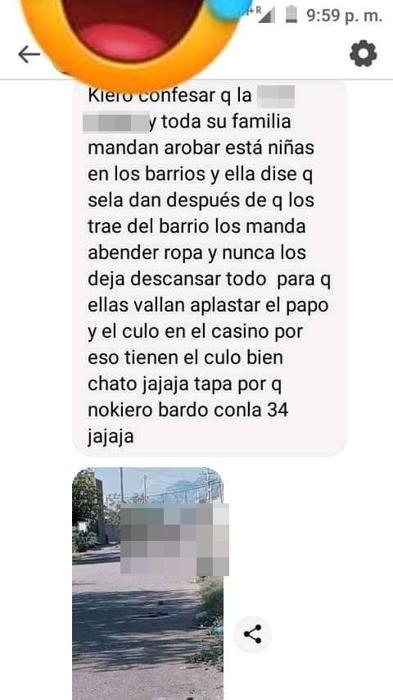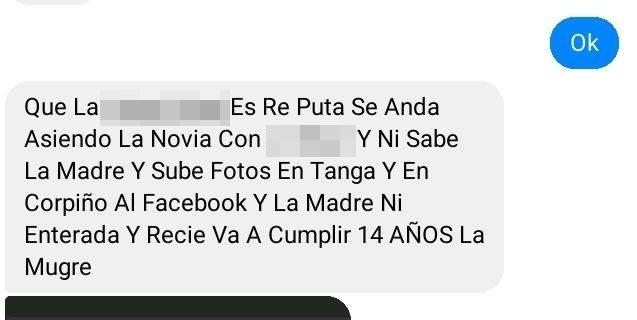 Los mensajes que se publican en Facebook son violentos, discriminatorios, pero, sobre todo, se refieren a la instancia privada de las personas que en esta red social quedan expuestos. Uno de los blancos es señalar a menores a las que tildan de “pu…” o mujeres más grandes a las que se refieren como “viejas gatos”.
