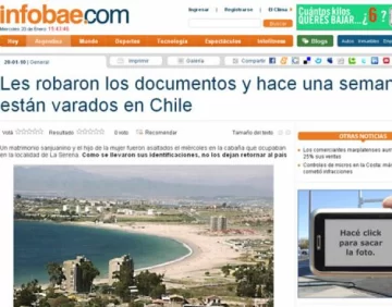"Nos estamos yendo al Consulado que está en Valparaíso para hacer los trámites para volver a San Juan", decía ayer desde Chile Federico Ozollo. El, junto a su pareja, Guadalupe Balaguer, y el hijo de la mujer, de 11 años, no pueden regresar a la provincia desde hace una semana porque les robaron los documentos del niño en La Serena, Chile, y no tenían cómo identificarlo y volver. El caso tomó mucha trascendencia a nivel mediático en toda Argentina. Y hoy a la mañana desde el Consulado argentino les podrían dar la respuesta sobre si podrán volver de inmediato a San Juan. "Los dos tenían las cédulas de identidad en la cartera de Guadalupe, pero les robaron los documentos del chico, por eso se los tuvimos que faxear desde la provincia", comentó Federico Ozollo padre.